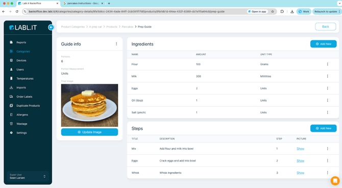 Prep guides can be set up either directly on the device or through the back office, and are intentionally designed to be quick to build and easy to follow.